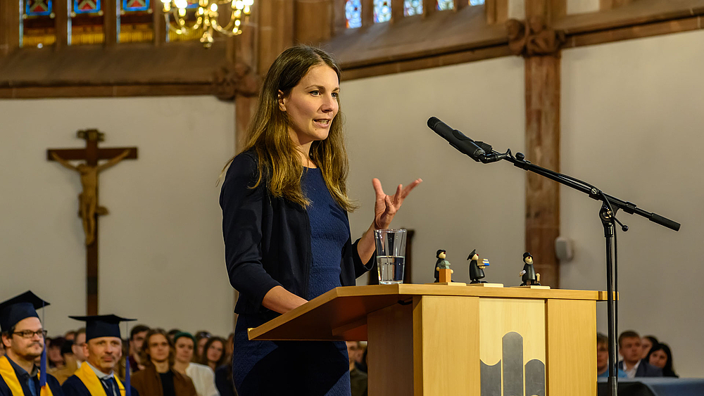 Im Studium liegen zwischen diesem und der nächsten einen entscheidenen Schritt markierenden Feier zwei oder drei Jahre. Im akademischen Kalender der Hochschule sind es nur zwei Wochen: Am 20. Oktober verabschiedet die Hochschule die Absolvent:innen des vergangenen Sommersemesters mit der Feierlichen Exmatrikulation.