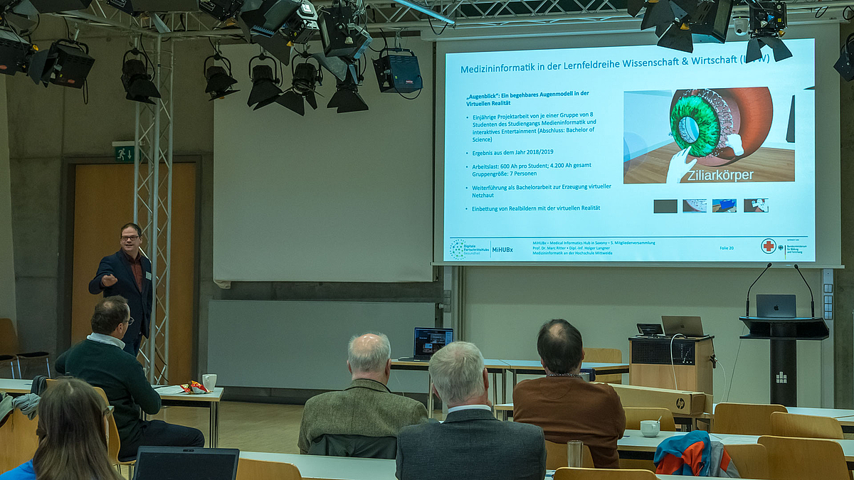 Einer der Partner:innen ist die Medieninformatik der Hochschule Mittweida. Sie war am 16. Januar Gastgeberin der Mitgliederversammlung von MiHubX mit rund dreißig Vertreter:innen von Hochschulen, Kliniken und Krankenhäusern sowie niedergelassenen Ärzt:innen.