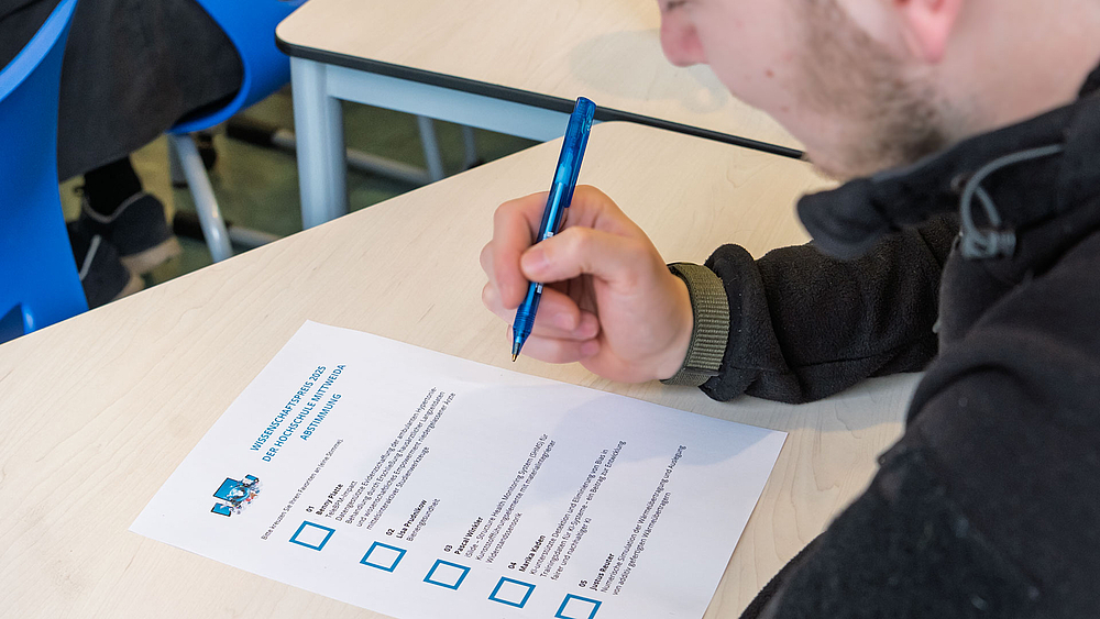 Für den Wissenschaftspreis hatte eine Jury die Einreichungen begutachtet und fünf Forschende nominiert. Beim Tag der Forschung traten sie noch einmal in einem Pitch an – ausschlagend für das Publikums-Voting, das am Ende die Reihenfolge der Jury-Bewertung veränderte.
